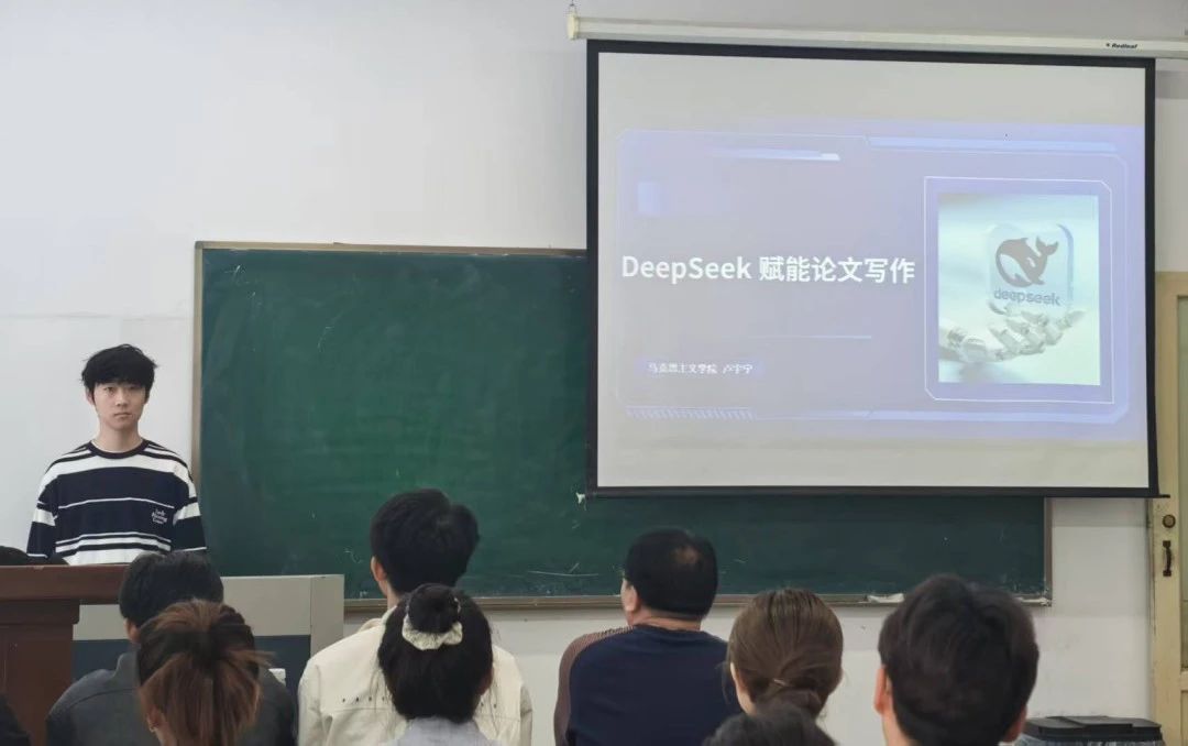 卢宇宁主要围绕“DeepSeek赋能论文写作”,从功能、模型特点、实操、理性看待AI四方面展开,着重介绍V3、R1、联网搜索三种主要模型,并结合案例分析其辅助科研的特性,强调使用时明确其需求、精准提问、多模型对比及验证筛选的重要性。分享会中同学们就AI辅助文献整理、提炼研究主题等展开热烈讨论。