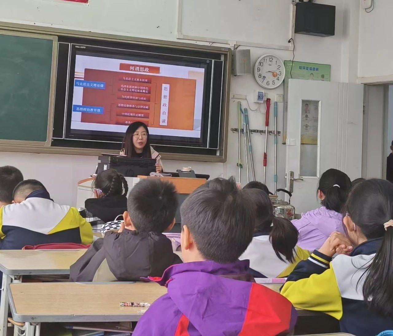 课堂上,高婷婷以 “梦想画像” 互动开启课程,引导孩子们描绘未来的自己,将个人梦想与习近平总书记对青少年 “把小我融入祖国大我”的寄语相联系,把个人理想融入国家发展的宏大愿景。同时她借助动画短片《我们的新时代》,通过简练生动的理论图景与生活化实践案例相融合的方式,深入浅出地阐释了习近平新时代中国特色社会主义思想的核心要义。孩子们透过校园垃圾分类、数字化教学设备更新、升旗仪式等日常点滴,感受理论与生活的共振,切实领悟生态文明建设、高质量发展以及中华民族伟大复兴的中国梦的深刻内涵。