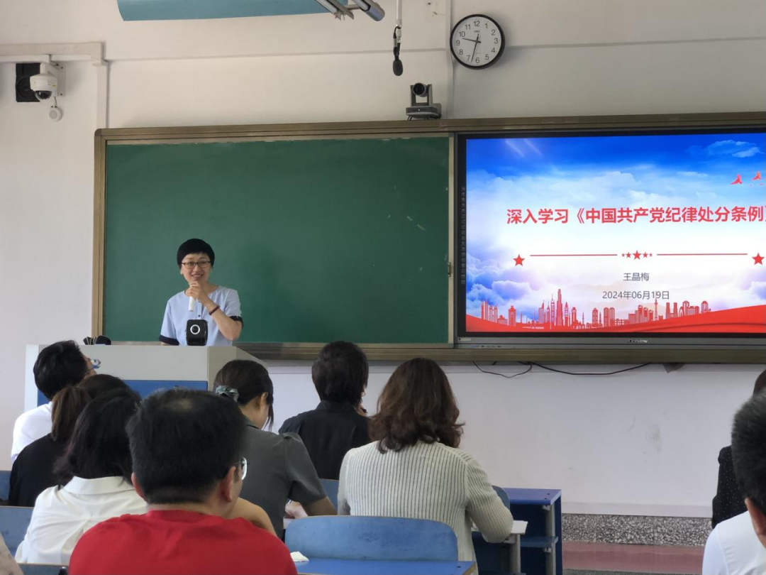于6月19日在2-512教室,开展了由学院党总支纪检委员王晶梅主讲的党纪学习教育专题党课。学院全体师生党员聆听了党课。