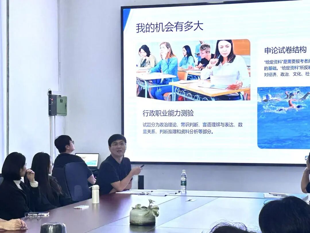 招生与就业处副处长赫贵怀以“在游泳中学游泳”为题,聚焦“我到底要不要考编?”“我要去哪里就业?”以及“我要怎么办?”三个学生普遍关切的问题,结合学校往届毕业生就业数据、最新全国、辽宁省考公数据及身边的真实案例,对当前就业形势进行了深刻剖析,提出了切实中肯的建议。整场分享干货满满,为处于择业焦虑中的同学们提供了宝贵的思路和强大的心理支持。