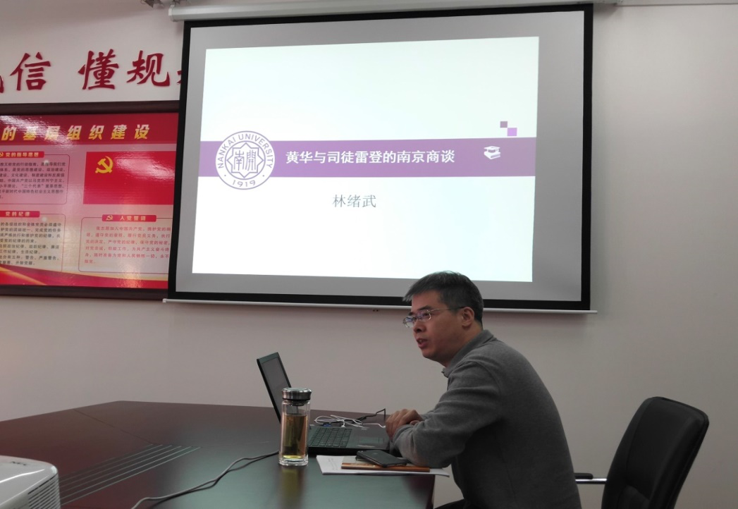 林绪武教授的学术报告,从“三国三方”大势因缘、南京商谈的所言、所行、所思和利益博弈、无果而终三个方面深入分析了1949年5月13日到7月25日的黄华与司徒雷登在南京的商谈。本次精彩讲座, 让听众对此次近现代史上的重要事件有了相当认知,也增进了马克思主义理论专业师生们相互间学术交流。