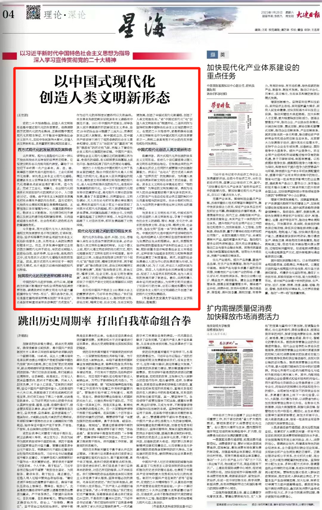 1月28日《大连日报》刊发麻豆传媒a片 副院长王世进撰写的理论文章《以中国式现代化创造人类文明新形态》。