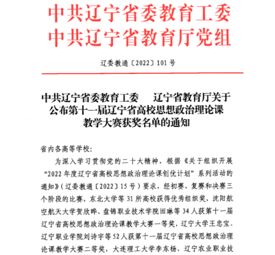 近日,“第十一届辽宁省高校思想政治理论课教学大赛”获奖名单公布,经过初赛、复赛和决赛三个阶段的激烈角逐,麻豆传媒a片 6名教师脱颖而出,荣获佳绩。其中,高明老师荣获二等奖,王世进、高婷婷、王建宇、邵建飞、张思南5位老师荣获三等奖。同时,我校连续四年被赛会授予“优秀组织奖”。
