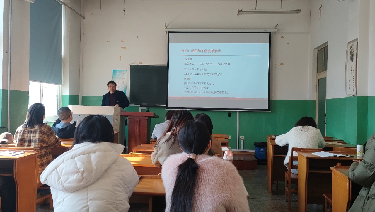 关于具体落实举措,学院副院长、马克思主义基本原理教研室王世进以习近平总书记在全国教育大会上关于加强思政课建设的重要论述为指引,系统梳理了我国高校思政课历次历史性改革进程,带领教师们把握守正与创新的辩证法则。